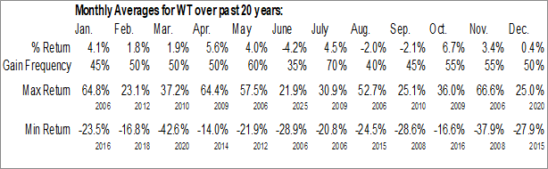 WisdomTree Investments, Inc. (NYSE:WT) Seasonal Chart