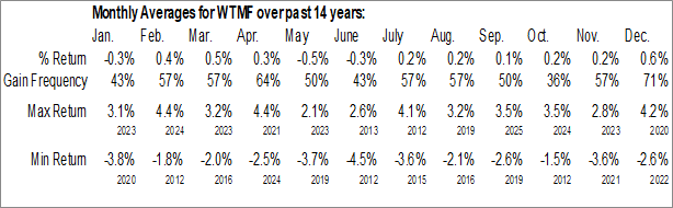 WisdomTree Managed Futures Strategy Fund (AMEX:WTMF) Seasonal Chart