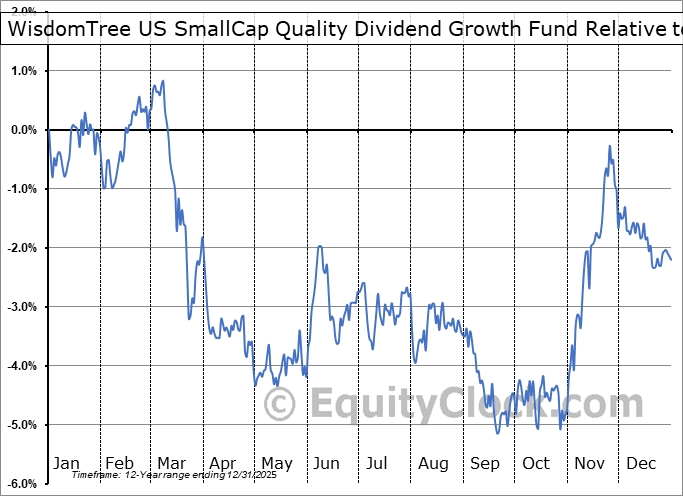 Analysis of the WisdomTree US SmallCap Quality Dividend Growth Fund (NASD:DGRS) seasonal charts above shows that a Buy Date of September 8 and a Sell Date of January 4 has resulted in a geometric average return of 2.43% above the benchmark rate of the S&P 500 Total Return Index over the past 11 years. This seasonal timeframe has shown positive results compared to the benchmark in 9 of those periods. This is a very good rate of success and the return strongly outperforms the relative buy-and-hold performance of the stock over the past 11 years by an average of 6.85% per year.
