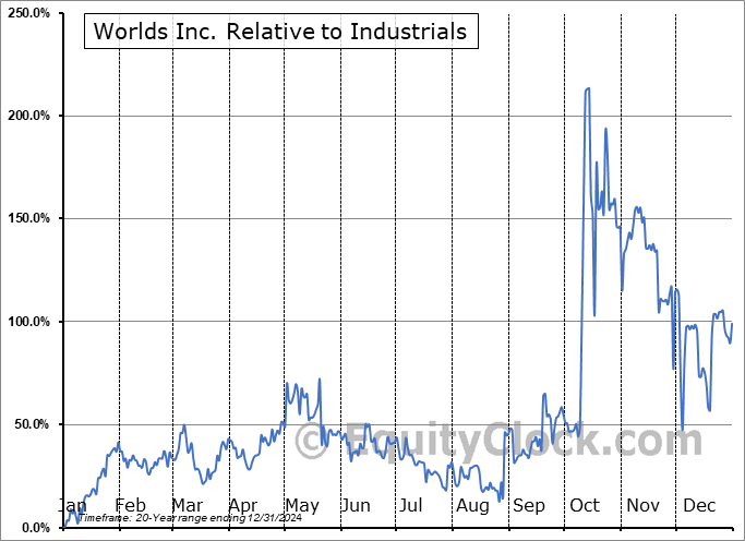 Analysis of the Worlds Inc. (OTCMKT:WDDD) seasonal charts above shows that a Buy Date of December 30 and a Sell Date of April 9 has resulted in a geometric average return of 32.31% above the benchmark rate of the S&P 500 Total Return Index over the past 20 years. This seasonal timeframe has shown positive results compared to the benchmark in 16 of those periods. This is a very good rate of success and the return strongly outperforms the relative buy-and-hold performance of the stock over the past 20 years by an average of 47% per year.