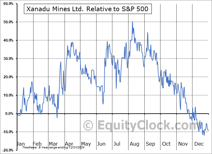 Analysis of the Xanadu Mines Ltd. (TSE:XAM.TO) seasonal charts above shows that a Buy Date of February 15 and a Sell Date of May 6 has resulted in a geometric average return of 24.44% above the benchmark rate of the S&P 500 Total Return Index over the past 6 years. This seasonal timeframe has shown positive results compared to the benchmark in 6 of those periods. This is an excellent rate of success and the return strongly outperforms the relative buy-and-hold performance of the stock over the past 6 years by an average of 52.19% per year.