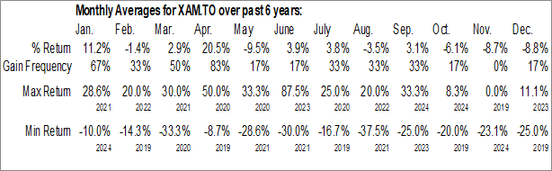 To download XAM.TO seasonal chart data, please log in or Subscribe.