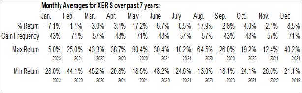 A word of caution: Only 6 years of data is available for shares of XERS, perhaps insufficient to create a seasonal profile that accurately gauges the seasonal tendencies influencing the investment. Ideally, while 20 years is preferred, at least 10 years of data is required to perform a seasonal analysis that is considered to be reliable for future seasonal periods.