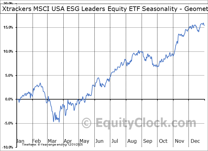 A word of caution: Only 5 years of data is available for shares of USSG, perhaps insufficient to create a seasonal profile that accurately gauges the seasonal tendencies influencing the investment. Ideally, while 20 years is preferred, at least 10 years of data is required to perform a seasonal analysis that is considered to be reliable for future seasonal periods.