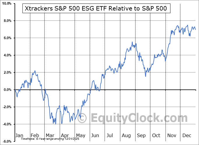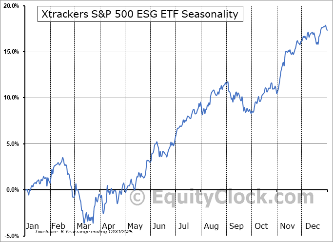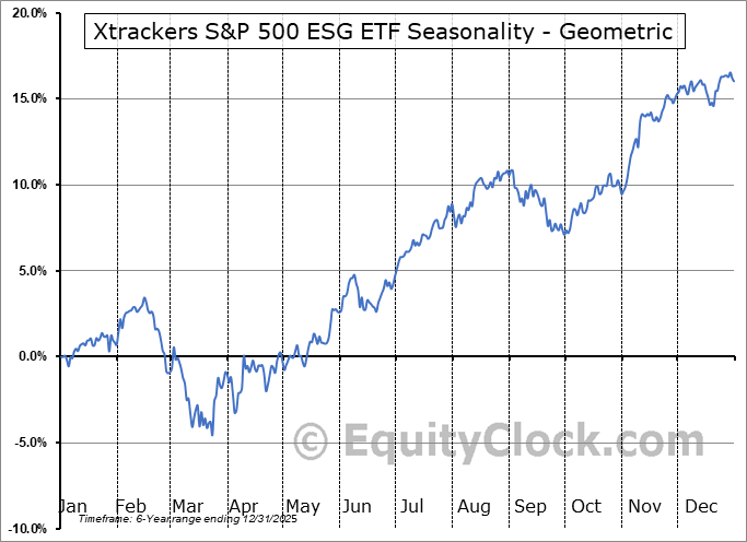 Analysis of the Xtrackers S&P 500 ESG ETF (AMEX:SNPE) seasonal charts above shows that a Buy Date of February 28 and a Sell Date of July 20 has resulted in a geometric average return of 1.4% above the benchmark rate of the S&P 500 Total Return Index over the past 5 years. This seasonal timeframe has shown positive results compared to the benchmark in 5 of those periods. This is an excellent rate of success and the return slightly outperforms the relative buy-and-hold performance of the stock over the past 5 years by an average of 0.55% per year.
