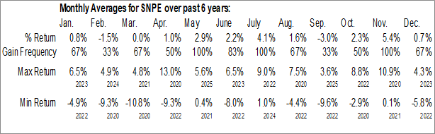 A word of caution: Only 5 years of data is available for shares of SNPE, perhaps insufficient to create a seasonal profile that accurately gauges the seasonal tendencies influencing the investment. Ideally, while 20 years is preferred, at least 10 years of data is required to perform a seasonal analysis that is considered to be reliable for future seasonal periods.