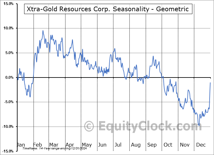 To download XTG.TO seasonal chart data, please log in or Subscribe.