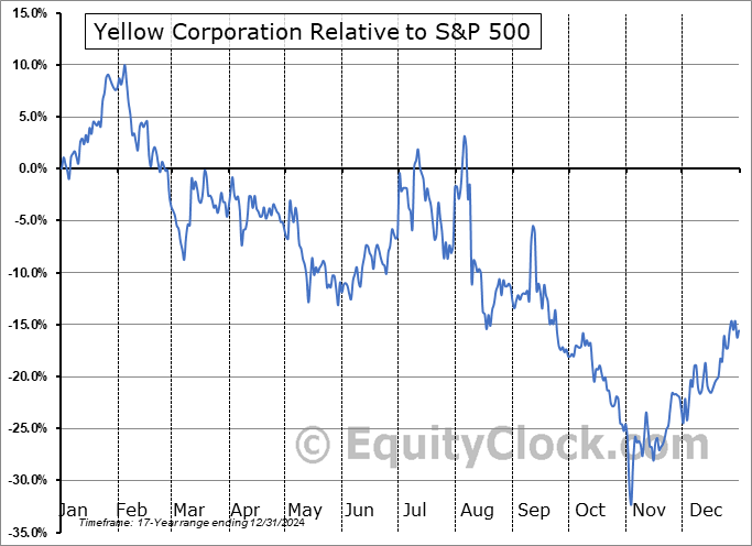 Analysis of the Yellow Corporation (OTCMKT:YELLQ) seasonal charts above shows that a Buy Date of June 11 and a Sell Date of September 12 has resulted in a geometric average return of 5.2% above the benchmark rate of the S&P 500 Total Return Index over the past 17 years. This seasonal timeframe has shown positive results compared to the benchmark in 11 of those periods. This is a fair rate of success and the return strongly outperforms the relative buy-and-hold performance of the stock over the past 17 years by an average of 105.2% per year.