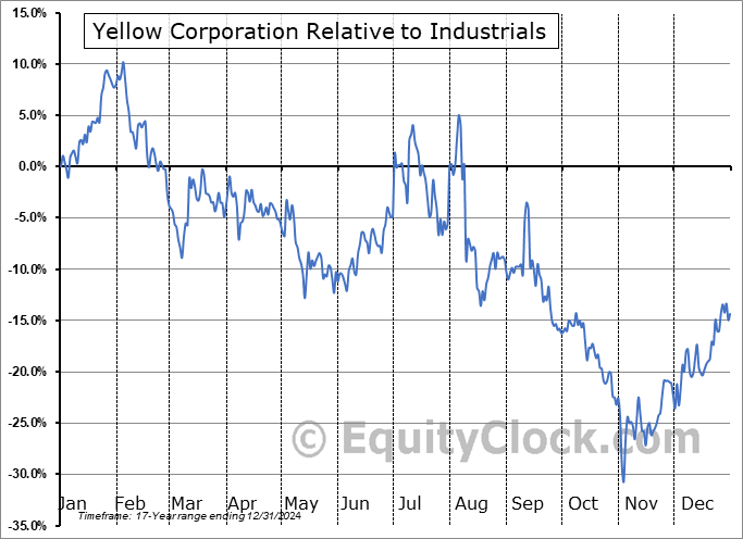 The seasonal timeframe correlates Poorly with the period of seasonal strength for the Industrials sector, which runs from October 29 to May 10. The seasonal chart for the broad sector is available via the following link: Industrials Sector Seasonal Chart.