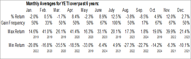 Yeti Holdings Inc. (NYSE:YETI) Seasonal Chart