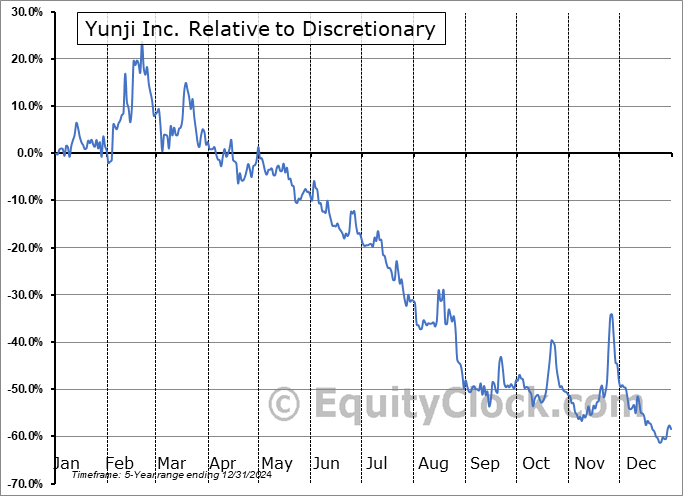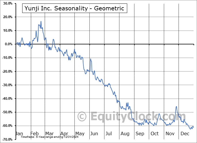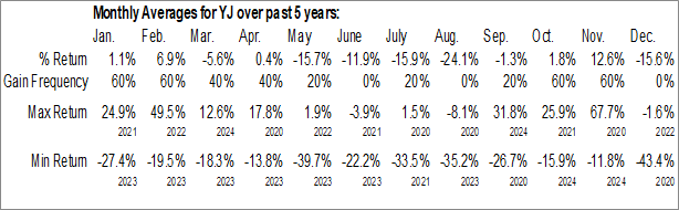 A word of caution: Only 5 years of data is available for shares of YJ, perhaps insufficient to create a seasonal profile that accurately gauges the seasonal tendencies influencing the investment. Ideally, while 20 years is preferred, at least 10 years of data is required to perform a seasonal analysis that is considered to be reliable for future seasonal periods.