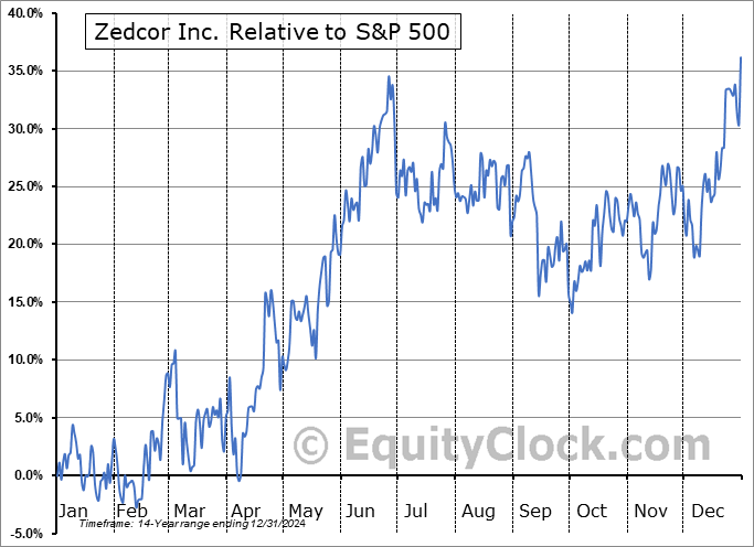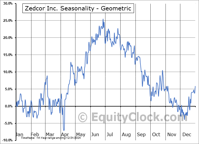Analysis of the Zedcor Inc. (TSXV:ZDC.V) seasonal charts above shows that a Buy Date of April 7 and a Sell Date of June 26 has resulted in a geometric average return of 32.49% above the benchmark rate of the S&P 500 Total Return Index over the past 14 years. This seasonal timeframe has shown positive results compared to the benchmark in 11 of those periods. This is a good rate of success and the return strongly outperforms the relative buy-and-hold performance of the stock over the past 14 years by an average of 39.44% per year.