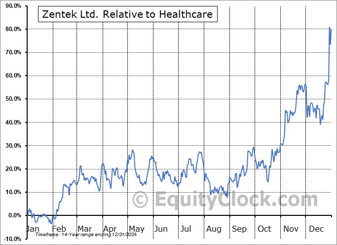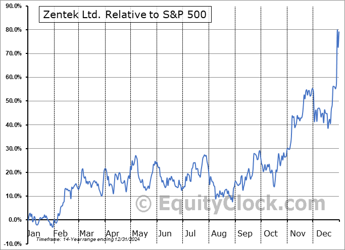 Analysis of the Zentek Ltd. (TSXV:ZEN.V) seasonal charts above shows that a Buy Date of December 23 and a Sell Date of March 13 has resulted in a geometric average return of 13.81% above the benchmark rate of the S&P 500 Total Return Index over the past 13 years. This seasonal timeframe has shown positive results compared to the benchmark in 11 of those periods. This is a very good rate of success and the return strongly outperforms the relative buy-and-hold performance of the stock over the past 13 years by an average of 20.54% per year.